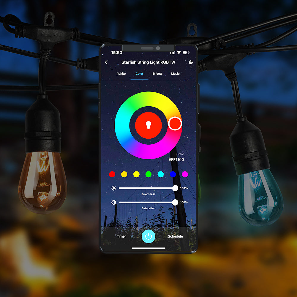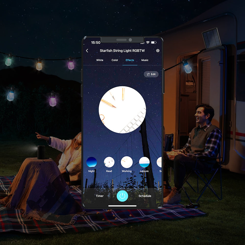 You can easily select various lighting scenes to enhance the ambiance for any occasion. Whether you're hosting a cozy outdoor dinner party, setting up a romantic date night, or organizing a fun backyard gathering, the Tuya controller offers a range of scene lighting options to suit your needs. Simply choose the desired scene from the app, and watch as your outdoor space is transformed into a captivating and immersive environment, adding a touch of magic to your outdoor lighting experience.