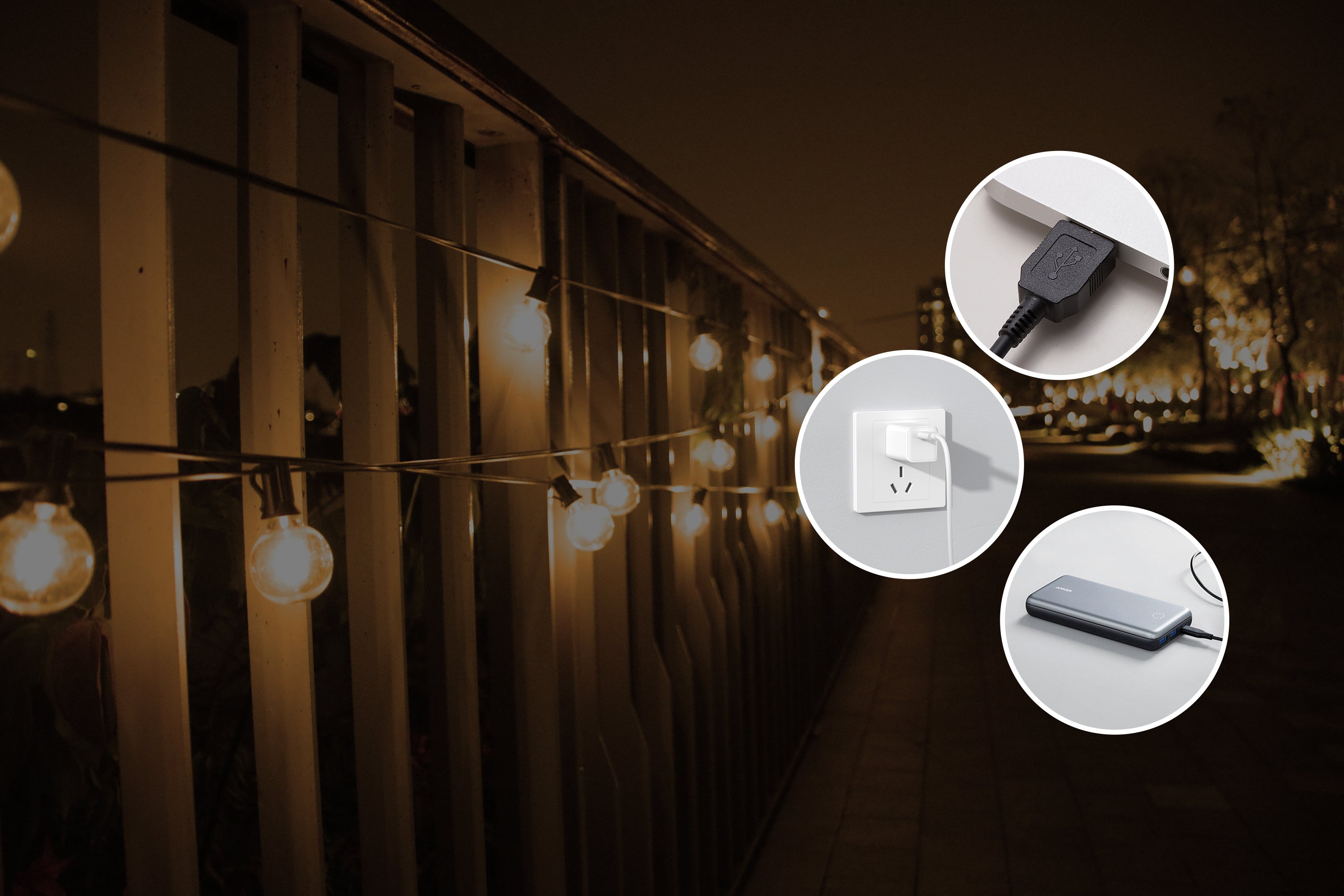 Shatterproof Design: Crafted with durable materials, including shatterproof components, our USB outdoor light strings provide robustness and resilience. You can enjoy your outdoor lighting without worrying about accidental breakage, ensuring a reliable and long-lasting lighting solution for your outdoor décor.